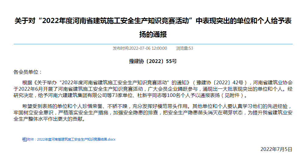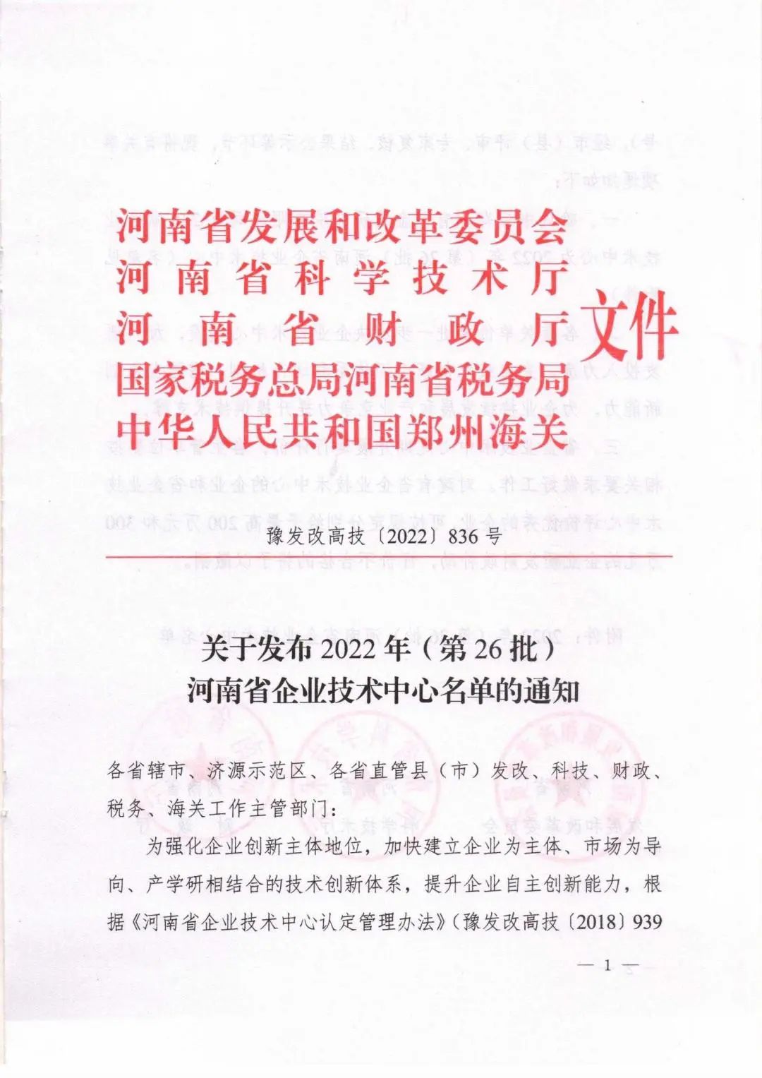 近日,河南省發(fā)改委、科技廳等五個權威部門聯(lián)合發(fā)文,公司企業(yè)技術中心獲批為 河南省企業(yè)技術中心,是繼2021年度獲批信陽市施工技術工程